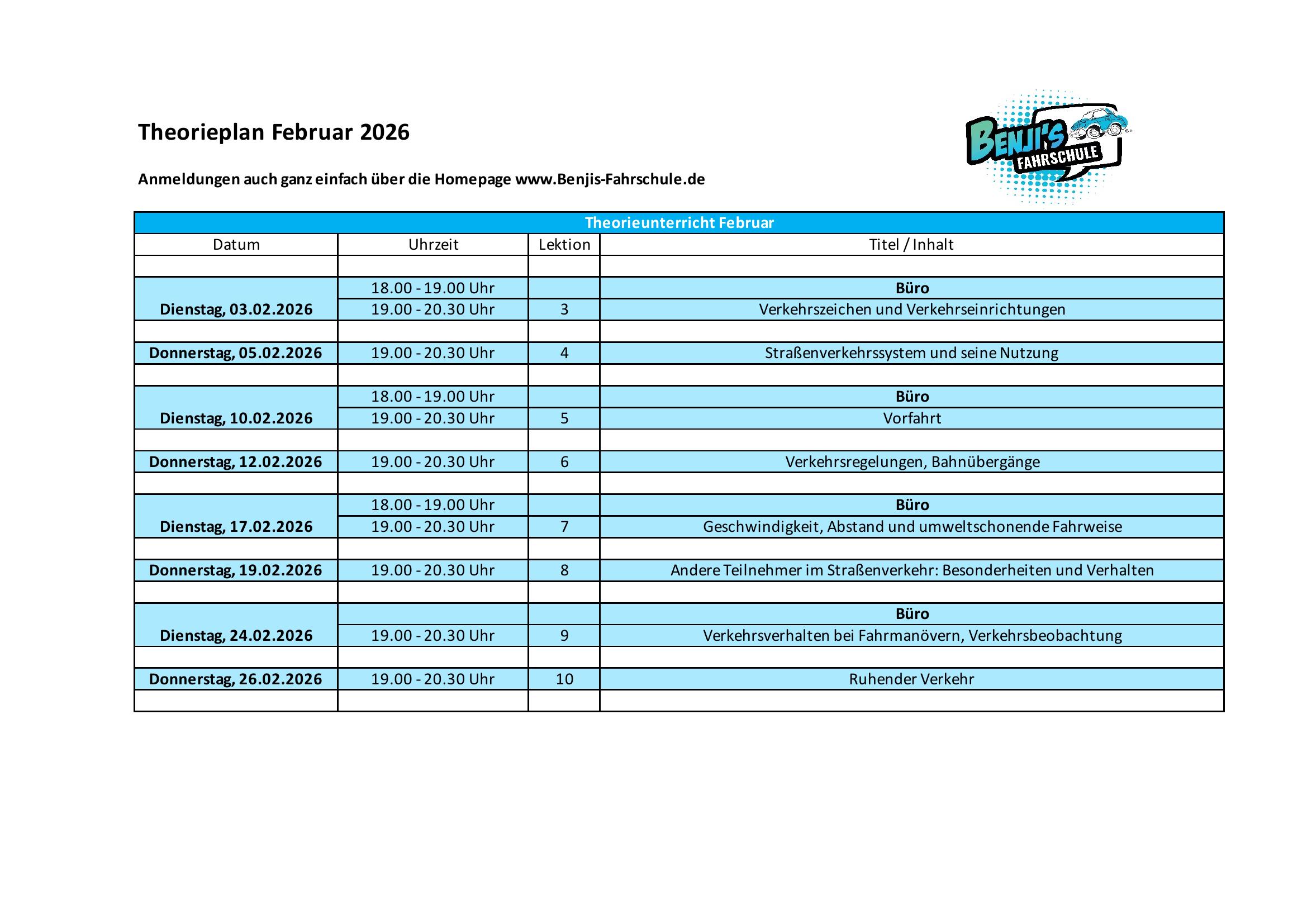 Theorieunterricht Februar 2026