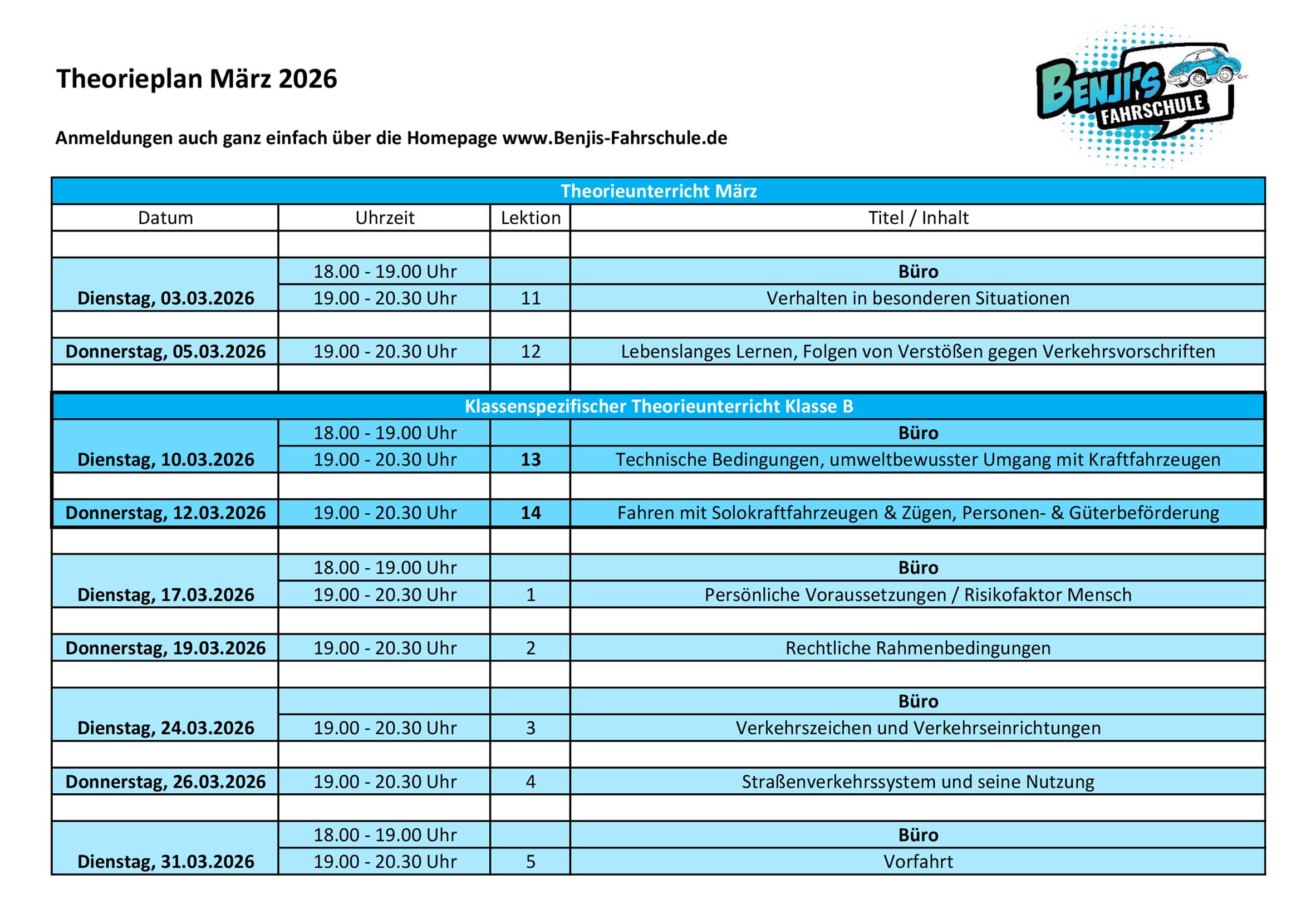 Theorieunterricht März 2026